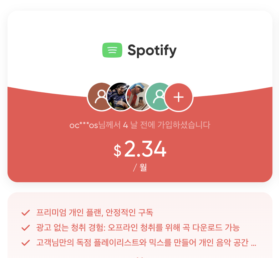 | 공유 방식 | 구독 기간 | 가격 (원화 환산) | 월 요금 |