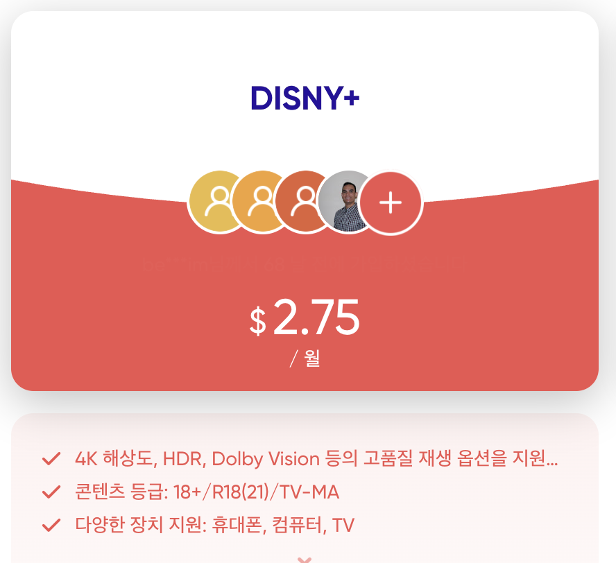 | 6인 공유 | 3개월 | 약 24,000원 | 약 8,000원 |